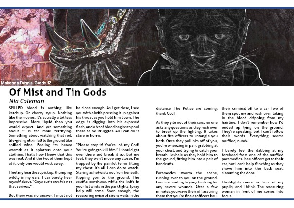 “Please stop it! You’re- oh my God! You're going to kill him!” I should get over there and break it up. But my feet, they won't move any closer. I'm trapped by the painful terror filling my chest. It’s all I can do to watch. Staring as he twists out from beneath, flipping you to the ground. The scuffle continues, while the knife in your fist winks in the park lights. I pray help will come. Soon enough, the reassuring noise of sirens wails in the
