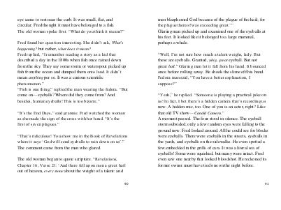 men blasphemed God because of the plague of the hail; for the plague thereof was exceeding great.’” Glaring man picked up and examined one of the eyeballs at his feet. It looked like it belonged to a large mammal, perhaps a whale.