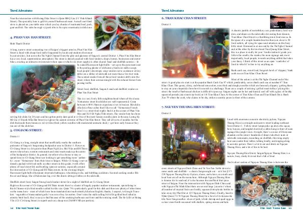cross streets of Nguyen Dinh Chieu and Vo Van Tan. Settle down to some snails and shellfish – a classic Saigon night out – at A Soi( 237- 239 Nguyen Thuong Hien). Oysters, clams, crab claws, sea snails and local beer are all on the menu here. Although Nguyen Thuong Hien is famous for its seafood, it’ s also become the unofficial fruit juice street of Saigon. Near the intersection with Nguyen Dinh Chieu and with Nguyen Thi Minh Khai there are several large‘ juiceries’ where all number of tropical fruits are freshly squeezed into plastic bottles to take away( try Phat Dat at 125 Nguyen Thuong Hien). Finally, head to Nhân Quán( 72-74 Nguyen Thuong Hien) for a bowl of its famous hủ tiếu Nam Vang noodles: slices of pork, whole shrimp and quail eggs in a clear sweet broth seasoned with shallots, spring onions and kale.