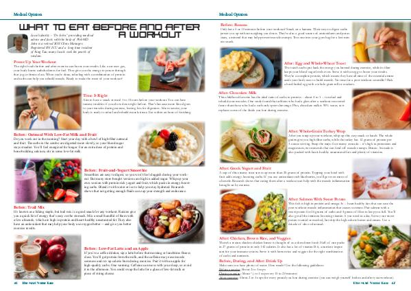 This fish is high in protein and omega-3s-- heart-healthy fats that can ease the post-workout muscle inflammation that causes soreness. Pair salmon with a sweet potato for 26 grams of carbs and 4 grams of fiber to keep you full. You’ ll also get all the immune-boosting vitamin A you need in a day. Serve your sweet potato roasted or mashed, but skip the high-calorie butter and cream. Use a drizzle of olive oil instead.