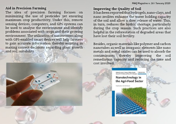 The idea of precision farming focuses on minimizing the use of pesticides yet ensuring maximum crop productivity. Under this, remote sensing devices, computers, and GPS systems can be used to analyse the environment and identify problems associated with crops and their growing environment. The utilization of nanosensors along with GPS-enabled smart devices will help farmers to gain accurate information thereby assisting in making correct decisions regarding plant growth and soil suitability.
