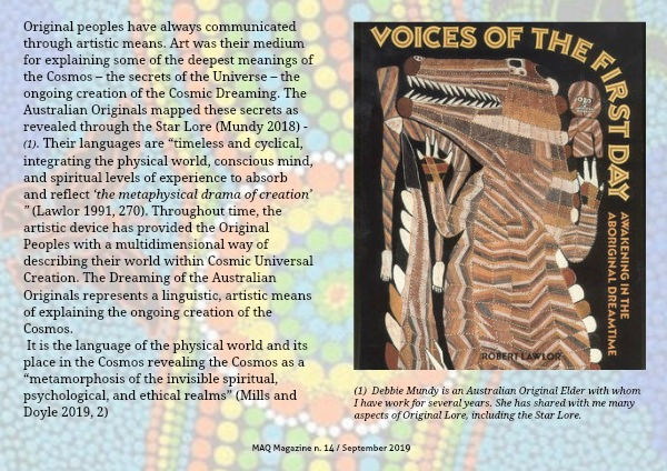(1) Debbie Mundy is an Australian Original Elder with whom I have work for several years. She has shared with me many aspects of Original Lore, including the Star Lore.