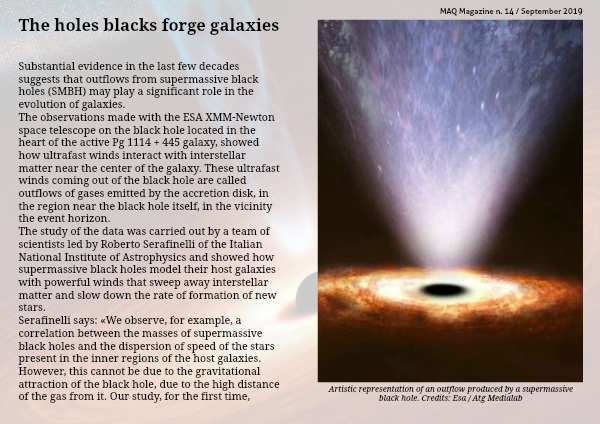 The observations made with the ESA XMM-Newton space telescope on the black hole located in the heart of the active Pg 1114 + 445 galaxy, showed how ultrafast winds interact with interstellar matter near the center of the galaxy. These ultrafast winds coming out of the black hole are called outflows of gases emitted by the accretion disk, in the region near the black hole itself, in the vicinity the event horizon.