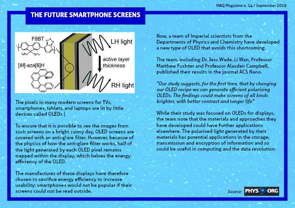 To ensure that it is possible to see the images from such screens on a bright sunny day, OLED screens are covered with an anti-glare filter. However, because of the physics of how the anti-glare filter works, half of the light generated by each OLED pixel remains trapped within the display, which halves the energy efficiency of the OLED.