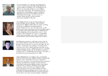 Eric Wilson has served as a volunteer trainer and last year helped with the successful summer conference at Orange Coast College. He has been in education for over 15 years. At Orange Coast College, he is information systems trainer and associate faculty, and helps run the campus computer center. Additionally, Eric is a part-time faculty for Kaplan University. He specializes in online learning and is a certified Blackboard trainer. He holds an M.S. Ed and is currently working on his MBA.