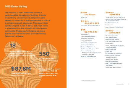 The Michael J. Fox Foundation Annual Report 2015 – Purpose. Partnership. Progress. | Page 11