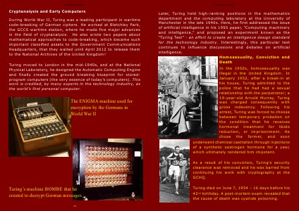 Later, Turing held high-ranking positions in the mathematics