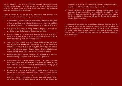 Teach students that creativity (being imaginative, selfmotivated, communicative and resilient) is crucial to their