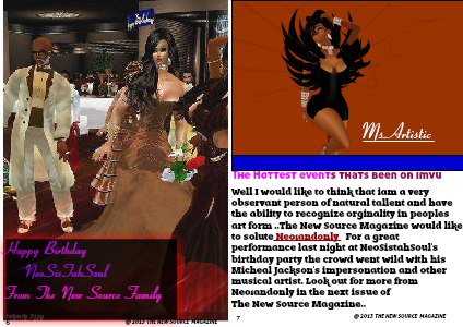 Well I would like to think that iam a very observant person of natural tallent and have the ability to recognize orginality in peoples art form ..The New Source Magazine would like to solute Neo1andonly For a great performance last night at NeoSistahSoul's birthday party the crowd went wild with his Micheal Jackson's impersonation and other musical artist. Look out for more from Neo1andonly in the next issue of
