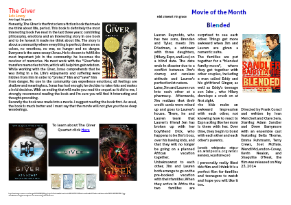 from danger. No one in the community can experience emotions; all feelings are shallow and meaningless. Jonas has had enough; he decides to take risks and makes a bold decision. With an ending that will make you read the sequel as it did to me, I strongly recommend reading the book and I'm sure you will find it interesting and thought-provoking.