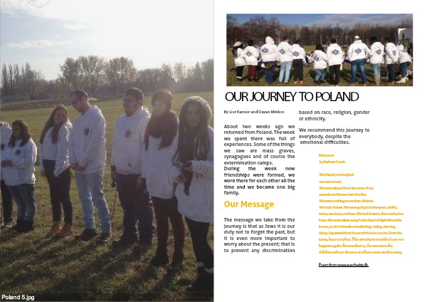 The message we take from the journey is that as Jews it is our duty not to forget the past, but it is even more important to worry about the present; that is to prevent any discrimination based on race, religion, gender or ethnicity.