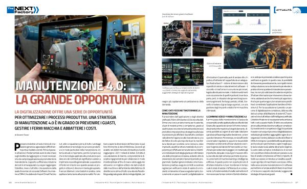 LA DIGITALIZZAZIONE OFFRE UNA SERIE DI OPPORTUNITÀ PER OTTIMIZZARE I PROCESSI PRODUTTIVI . UNA STRATEGIA DI MANUTENZIONE 4.0 È IN GRADO DI PREVENIRE I GUASTI , GESTIRE I FERMI MACCHIA E ABBATTERE I COSTI .