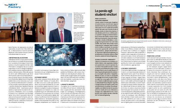 Da sinistra : un momento della premiazione del contest “ Industry 4.0 ” lanciato all ’ inizio dello scorso anno da MindSphere World e rivolto agli studenti del Politecnico di Milano