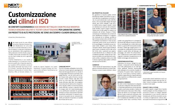 Nata mezzo secolo fa come officina meccanica , l ’ azienda monzese Conforti Oleodinamica nel corso della sua storia si è evoluta divenendo un fornitore di impianti e componenti oleodinamici , per poi specializzarsi nella progettazione e nella produzione di cilindri idraulici compresi i modelli conformi alla normativa ISO . È oggi uno dei marchi italiani più noti e apprezzati nel settore . « Conforti Oleodinamica è una società di medie dimensioni , in cui lavorano circa 30 persone qualificate e di grande esperienza , in grado di offrire prodotti e servizi di alta qualità apprezzati dai clienti di tutto il mondo », esordisce Nicolò Mosconi , Direttore Commerciale di Conforti Oleodinamica . Oltre al mercato italiano , l ’ a- zienda ha saputo ritagliarsi uno spazio importante in quello europeo ed è presente anche nel Nord e Sud America con i suoi distributori .