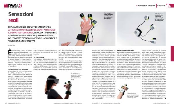 TOCCARE IL DIGITALE Tra le realtà nate all ’ interno di e-Novia è presente anche Weart , una start-up nata alla fine del 2018 da un ’ idea dei tre cofondatori ( Giovanni Spagnoletti , Guido Gioioso e il Professore Ordinario dell ’ Università di Siena Domenico Prattichizzo ), che sviluppa prodotti indossabili e portatili per la digitalizzazione del senso del
