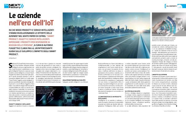 L ’ IMPATTO SULL ’ AZIENDA L ’ evoluzione di prodotti e servizi smart sta rivoluzionando le offerte delle aziende e il loro modo di posizionarsi sul mercato : una sfida che è anche un ’ opportunità per consolidare la relazione con la base di clienti , individuare nuove nicchie di mercato , definire nuovi modelli di business , valorizzare i dati raccolti . L ’ innovazione di prodotto , infatti , comporta di riflesso il rinnovamento dell ’ intera organizzazione . « Con l ’ innovazione di prodotto e servizio si ha un impatto sulla usabilità di quanto si produce o realizza , si semplificano i processi e , in questo modo , si consolida e valorizza il brand delle aziende che decidono di innovare attraverso design e tecnologia digitale », spiega Alfonso Fuggetta , Amministratore Delegato e Direttore Scientifico di Cefriel .