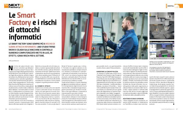 LE SMART FACTORY SONO SEMPRE PIÙ A RISCHIO DI SUBIRE ATTACCHI INFORMATICI . UNO STUDIO TREND MICRO E CELADA SULLE MACCHINE A CONTROLLO NUMERICO COMPUTERIZZATO METTE IN LUCE , IN EFFETTI , I GRAVI RISCHI PER IL SETTORE .