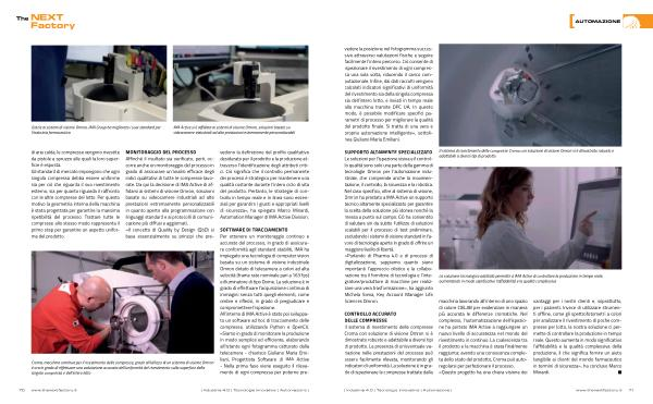 Croma , macchina continua per il rivestimento delle compresse , grazie all ’ utilizzo di un sistema di visione Omron è ora in grado di effettuare una valutazione accurata dell ’ uniformità del rivestimento sulla superficie della singola compressa e dell ’ intero lotto vedono la definizione del profilo qualitativo desiderato per il prodotto e la produzione attraverso l ’ identificazione degli attributi critici . Ciò significa che il controllo permanente dei processi è strategico per mantenere una qualità costante durante l ’ intero ciclo di vita del prodotto . Pertanto , le strategie di controllo in tempo reale e in linea sono essenziali per garantire i giusti e appropriati livelli di sicurezza », ha spiegato Marco Minardi , Automation Manager di IMA Active Division .