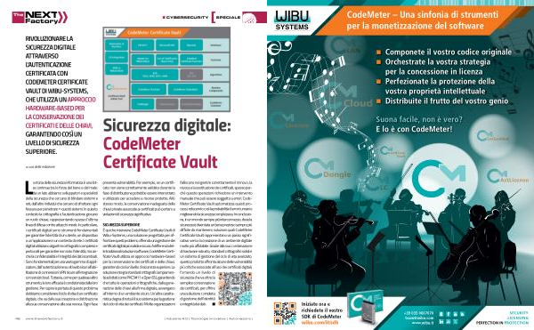 SICUREZZA SUPERIORE È qui che interviene CodeMeter Certificate Vault di Wibu-Systems , una soluzione progettata per affrontare questi problemi , offrendo una gestione dei certificati digitali più solida e sicura . A differenza delle tradizionali soluzioni software , CodeMeter Certificate Vault utilizza un approccio hardware-based per la conservazione dei certificati e delle chiavi , garantendo così un livello di sicurezza superiore . La soluzione integra standard crittografici ampiamente adottati come PKCS # 11 e OpenSSL garantendo che tutte le operazioni crittografiche , dalla generazione delle chiavi alla firma digitale , avvengano all ’ interno di un ambiente sicuro . Un ’ altra caratteristica degna di nota è il suo sistema per la gestione del ciclo di vita dei certificati . Molte organizzazioni falliscono nel gestire correttamente il rinnovo , la revoca e la sostituzione dei certificati , spesso perché queste operazioni richiedono un intervento manuale che può essere soggetto a errori . Code- Meter Certificate Vault automatizza questi processi , riducendo così la probabilità di errori umani e migliorando la sicurezza complessiva . In conclusione , in un mondo sempre più interconnesso , dove la sicurezza è diventata un bene prezioso sempre più difficile da mantenere , soluzioni quali CodeMeter Certificate Vault rappresentano un passo significativo verso la creazione di un ambiente digitale molto più affidabile . Grazie alla sua combinazione di hardware robusto , standard crittografici solidi e un sistema di gestione del ciclo di vita avanzato , questo prodotto affronta alcune delle vulnerabilità più critiche associate all ’ uso dei certificati digitali , fornendo un livello di sicurezza che va oltre la semplice conservazione dei certificati , per offrire una soluzione completa di gestione dell ’ identità e integrità dei dati .