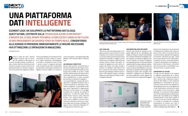 Presente in Italia dal 2022 , l ’ azienda norvegese Element Logic ha sviluppato una piattaforma dati basata sul cloud che raccoglie , analizza , condivide e utilizza in tempo reale flussi di dati provenienti da più fonti . eLogiq è costruito sulla tecnologia Microsoft Azure con l ’ obiettivo a lungo termine di una soluzione di magazzino completamente automatizzata che si ottimizza da sola . « L ’ incertezza del futuro rafforza la necessità di reagire rapidamente nell ’ intralogistica e nel modo in cui gestiamo le merci in tutto il mondo . L ’ accesso al supporto decisionale e alla comprensione dei dati è fondamentale per sopravvivere , ottimizzare le operazioni e la logistica e rimanere redditizi in un mercato in continua evoluzione », ha dichiarato Dag-Adler Blakseth , Chief Executive Officer di Element Logic .