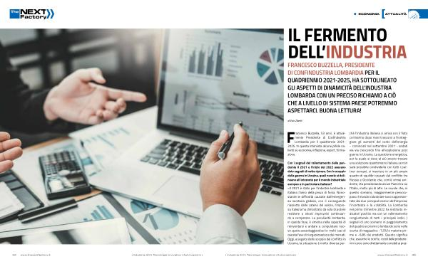 FRANCESCO BUZZELLA , PRESIDENTE DI CONFINDUSTRIA LOMBARDIA PER IL QUADRIENNIO 2021-2025 , HA SOTTOLINEATO GLI ASPETTI DI DINAMICITÀ DELL ’ INDUSTRIA LOMBARDA CON UN PRECISO RICHIAMO A CIÒ CHE A LIVELLO DI SISTEMA PAESE POTREMMO ASPETTARCI . BUONA LETTURA !