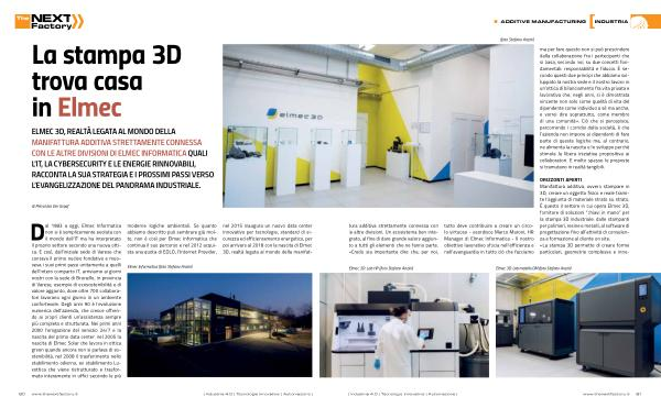 ORIZZONTI APERTI Manifattura additiva , ovvero stampare in 3D , creare un oggetto fisico e reale tramite l ’ aggiunta di materiale strato su strato . È questo il settore in cui opera Elmec 3D , fornitore di soluzioni “ chiavi in mano ” per la stampa 3D industriale : dalle stampanti per polimeri , resine e metalli , al software di progettazione fino all ’ attività di consulenza e formazione al cliente on site . « La stampa 3D permette di creare forme particolari , geometrie complesse e inno-