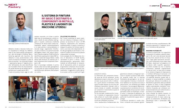 MASSIMA FLESSIBILITÀ La finitura superficiale e la rugosità di componenti in metallo e plastica stampati in 3D , così come dei pezzi lavorati da macchine utensili al fine di rimuovere i segni delle lavorazioni meccaniche , viene effettuata invece dalla linea M1 Basic , ideale per la levigatura e la lucidatura delle superfici , garantendo ottimi risultati sia che si lavorino componenti stampati singolarmente o a piccoli lotti . La macchina è dotata di un sistema integrato di depurazione e riutilizzo dell ’ acqua di processo e di monitoraggio del relativo trattamento . « Il materiale abrasivo , grazie alle vibrazioni , si muove andando a contatto dei pezzi per ottenere la lucidatura . La flessibilità è garantita dalla possibilità di gestire la vasca a tutta lunghezza oppure sezionandola , mediante l ’ inserimento di paratie , per utilizzare contemporaneamente più metodi diversi », ha messo in luce Malacarne . Come emerge da quanto esposto , la combinazione di competenze e tecnologie permette di creare valore aggiunto ai componenti , sfruttando così pienamente tutto il potenziale della stampa 3D .