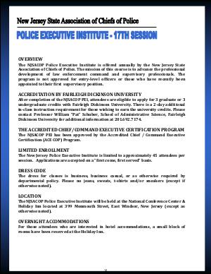 The New Jersey Police Executive Institute is limited to approximately 45 attendees per session. Applications are accepted on a“ first come, first served” basis.