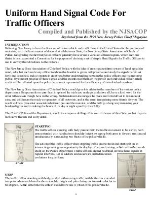 INTRODUCTION Believing New Jersey to have the finest set of motor vehicle and traffic laws in the United States for the guidance of motorists, with the least amount of discomfort while in our State, the New Jersey State Association of Chiefs of Police, recognizing the fact that police officers generally have or use a variation of hand signals, which each one thinks is best, appointed a Committee for the purpose of devising a set of simple Hand Signals for Traffic Officers to use to convey their directions to the motorist.
