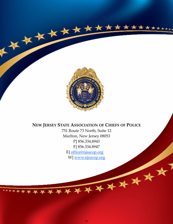 NEW JERSEY STATE ASSOCIATION OF CHIEFS OF POLICE 751 Route 73 North, Suite 12 Marlton, New Jersey 08053 P ] 856.334.8943 F ] 856.334.8947 E ] office @ njsacop. org W ] www. njsacop. org