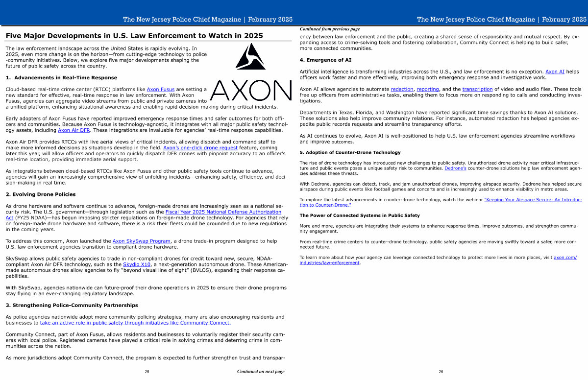 The New Jersey Police Chief Magazine | February 2025 Five Major Developments in U . S . Law Enforcement to Watch in 2025