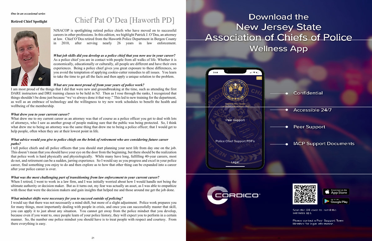 NJSACOP is spotlighting retired police chiefs who have moved on to successful careers in other professions. In this edition, we highlight Patrick J. O’ Dea, an attorney at law. Chief O’ Dea retired from the Haworth Police Department in Bergen County in 2010, after serving nearly 26 years in law enforcement.