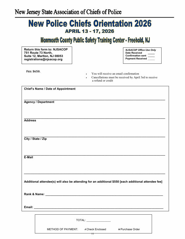 Return this form to: NJSACOP 751 Route 73 North, Suite 12, Marlton, NJ 08053 registrations @ njsacop. org