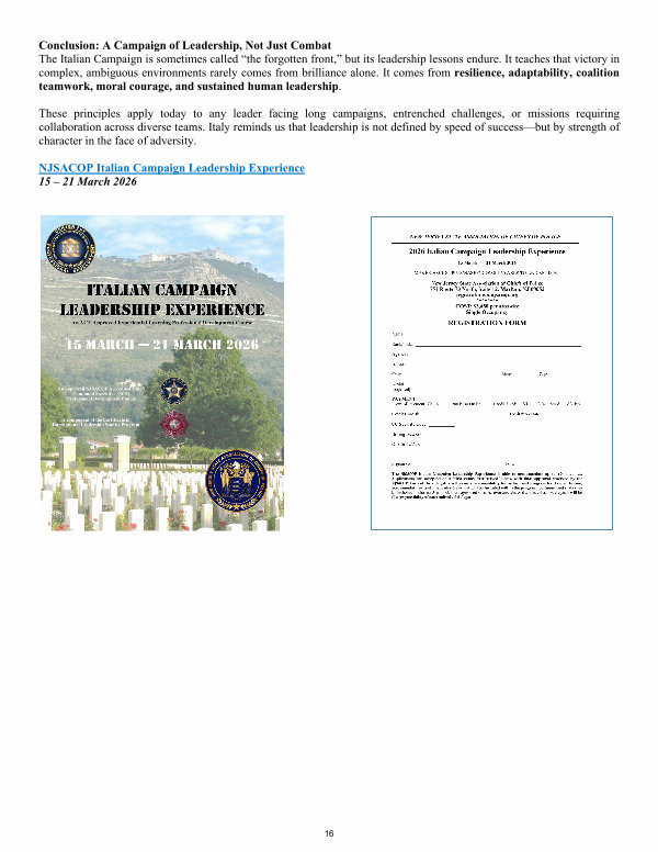 NJSACOP Italian Campaign Leadership Experience 15 – 21 March 2026