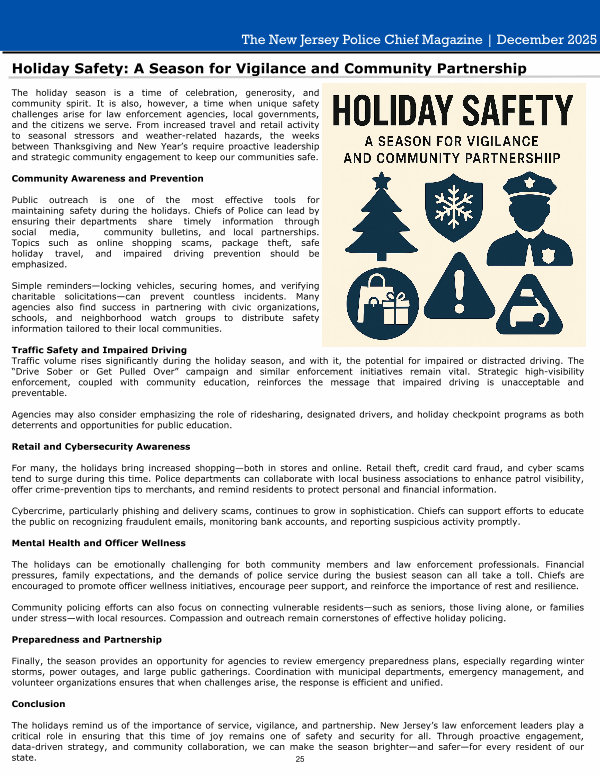 The New Jersey Police Chief Magazine | December 2025 Holiday Safety: A Season for Vigilance and Community Partnership