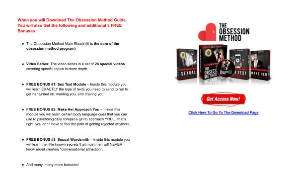 When you will Download The Obsession Method Guide , You will also Get the following and additional 3 FREE Bonuses :