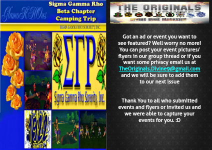Got an ad or event you want to see featured? Well worry no more! You can post your event pictures/flyers in our group thread or if you want some privacy email us at TheOriginals.Divine9@gmail.com and we will be sure to add them to our next issue