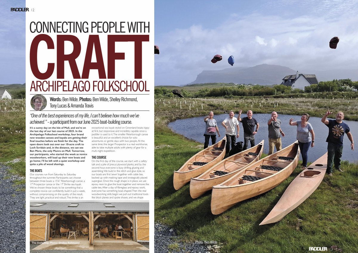 It’ s a sunny day on the Isle of Mull, and we’ re on the last day of our last course of 2025. In the Archipelago Folkschool workshop, four brand new wooden canoes and kayaks are getting their final touches before we finish for the day. The open doors look out over our 10-acre croft to Loch Scridain and, in the distance, we can see Ben More, the only Munro on Mull. Tomorrow, our participants, who started the week as novice woodworkers, will load up their new boats and go home; I’ ll be left with a quiet workshop and quite a pile of wood shavings.