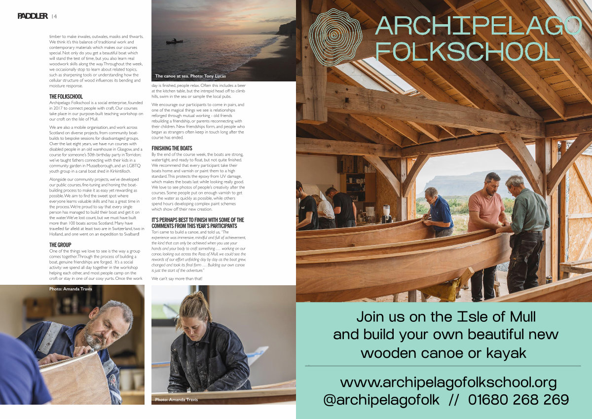 Alongside our community projects, we’ ve developed our public courses, fine-tuning and honing the boatbuilding process to make it as easy yet rewarding as possible. We aim to find the sweet spot where everyone learns valuable skills and has a great time in the process. We’ re proud to say that every single person has managed to build their boat and get it on the water. We’ ve lost count, but we must have built more than 100 boats across Scotland. Many have travelled far afield: at least two are in Switzerland, two in Holland, and one went on an expedition to Svalbard!