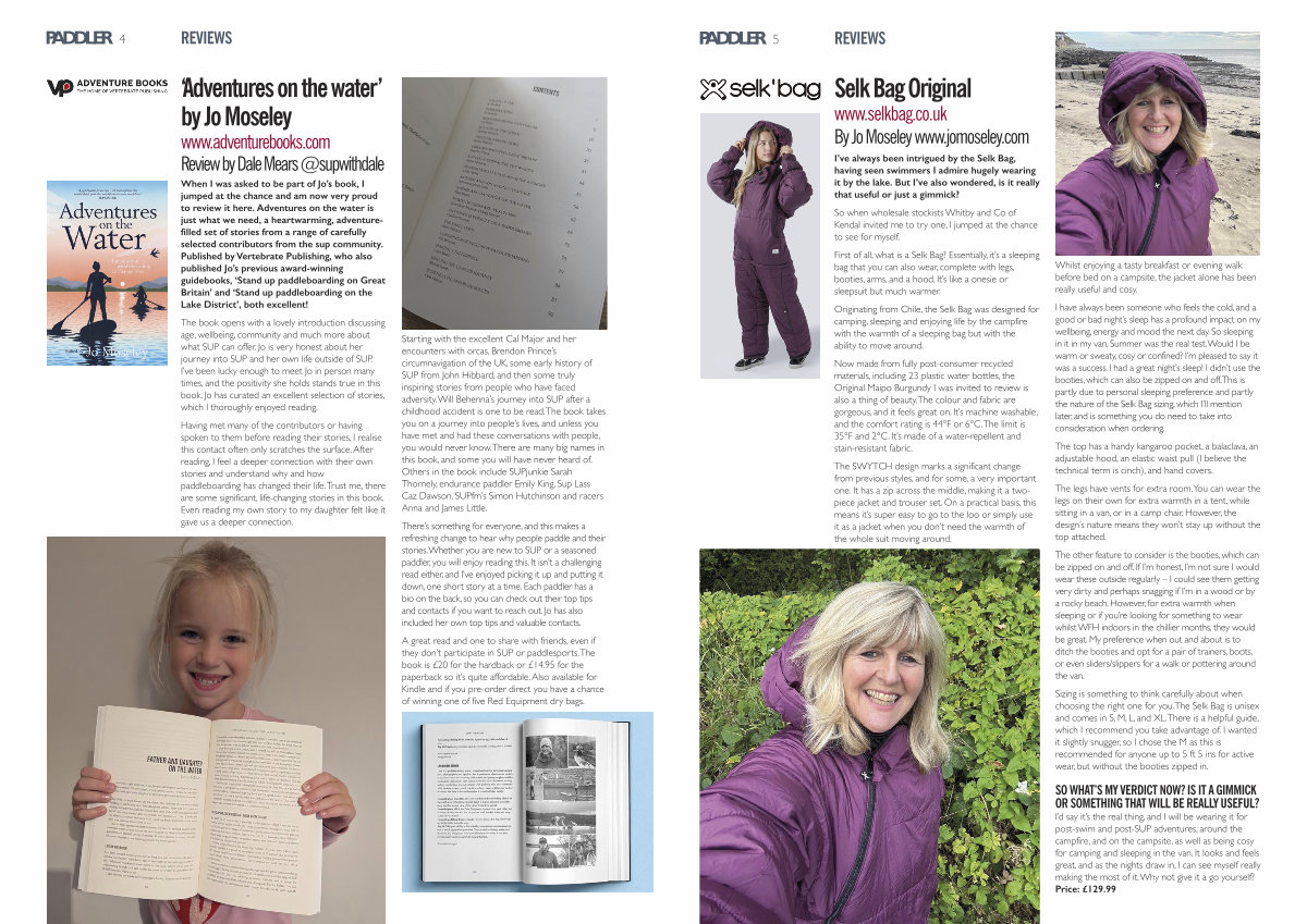 When I was asked to be part of Jo’ s book, I jumped at the chance and am now very proud to review it here. Adventures on the water is just what we need, a heartwarming, adventurefilled set of stories from a range of carefully selected contributors from the sup community. Published by Vertebrate Publishing, who also published Jo’ s previous award-winning guidebooks,‘ Stand up paddleboarding on Great Britain’ and‘ Stand up paddleboarding on the Lake District’, both excellent!