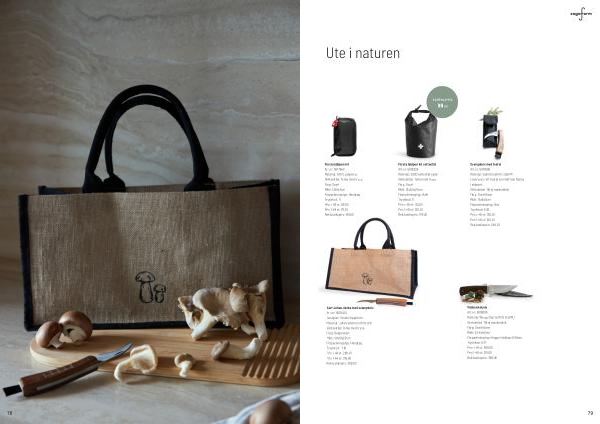 Karl-Johan väska med svampkniv Art . nr : 5018342 Designer : Studio Sagaform Material : Jute / valnöt / rostfritt stål Skötselråd : Torka med trasa Färg : Beige / svart Mått : 40x19x22cm Förpackningstyp : Hangtag Tryckkod : 11 ; 16 Pris > 48 st : 289,00 Pris 1-48 st : 315,00 Rek . butikspris : 399,00