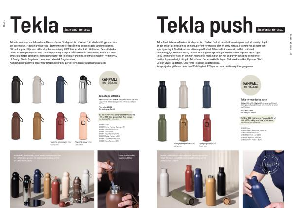 Tekla är en modern och funktionell termosflaska för dig som är i rörelse, från stadsliv till gymmet och allt däremellan. Flaskan är tillverkad i återvunnet rostfritt stål med dubbelväggig vakuumisolering. Ett tunt kopparhölje som håller drycken varm i upp till 12 timmar eller kall i 24 timmar. Den slitstarka pulverlackade ytan ger ett matt och greppvänligt uttryck. Stålflaskan tål maskindisk, kommer i flera smakfulla färger och har ett löstagbart sugrör för flexibel användning. Diskmaskinssäker. Rymmer 50 cl. Design Studio Sagaform. Levereras i klassisk Sagaformbox. Kampanjpriser gäller vid order med förädling i vår B2B-portal: www. profile. sagaformgroup. com