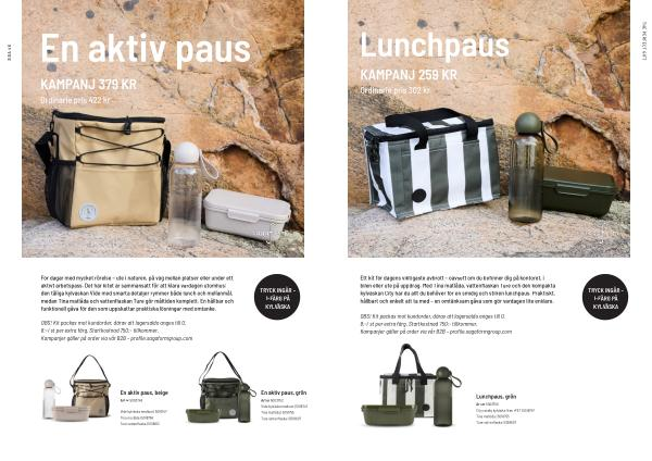 Ett kit för dagens viktigaste avbrott – oavsett om du befinner dig på kontoret, i bilen eller ute på uppdrag. Med Tina matlåda, vattenflaskan Ture och den kompakta kylväskan City har du allt du behöver för en smidig och stilren lunchpaus. Praktiskt, hållbart och enkelt att ta med – en omtänksam gåva som gör vardagen lite enklare.