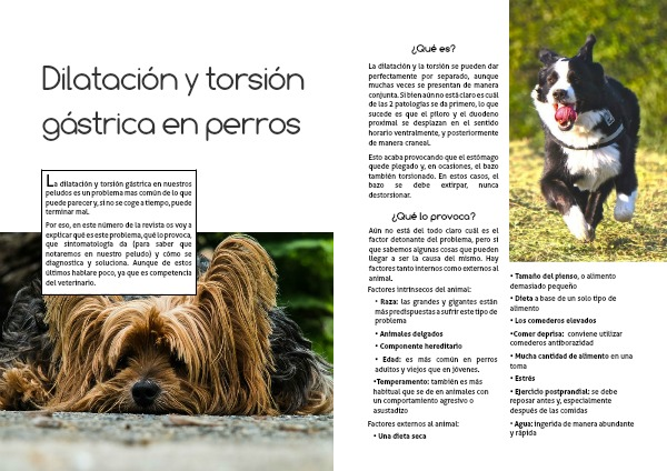 La dilatación y la torsión se pueden dar perfectamente por separado, aunque muchas veces se presentan de manera conjunta. Si bien aún no está claro es cuál de las 2 patologías se da primero, lo que sucede es que el píloro y el duodeno proximal se desplazan en el sentido horario ventralmente, y posteriormente de manera craneal.