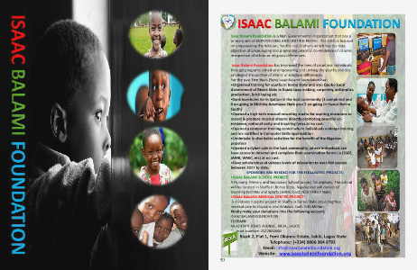 For the past Five Years (5yrs) Isaac Balami Foundation has: