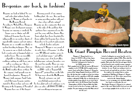 elsewhere’, he says. ‘People were getting in touch via message boards and email with tips and advice. And since the weigh-in at the weekend, they’re sending congratulations’! Paul Hansord, Thompson & Morgan’s horticultural director said, ‘We’ve always enjoyed being involved in the Autumn Pumpkin