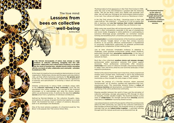 Similarly , professionals in various fields contribute unique skills to the collective well-being of their community , much like the specialised roles within a beehive . The concept of the hivemind encourages us to acknowledge and value the diverse talents within our professional circles . It reinforces the idea that collective success arises from a symphony of individual contributions .