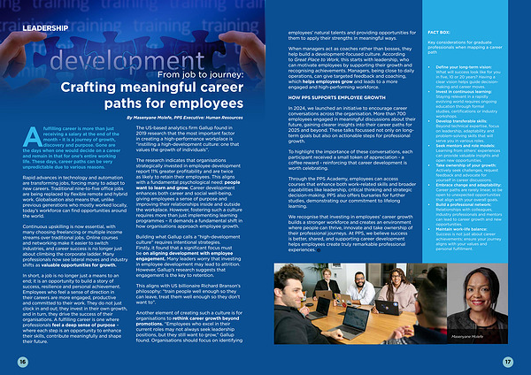 In short, a job is no longer just a means to an end; it is an opportunity to build a story of success, resilience and personal achievement. Employees who feel a sense of direction in their careers are more engaged, productive and committed to their work. They do not just clock in and out; they invest in their own growth, and in turn, they drive the success of their organisations. A fulfilling career is one where professionals feel a deep sense of purpose – where each step is an opportunity to enhance their skills, contribute meaningfully and shape their future.
