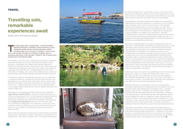 Although it is not always possible to travel solo, when the opportunity presents itself, it should be embraced fully as it offers a unique opportunity for both personal and professional enrichment. Whether it is a business trip or an individual adventure, travelling alone allows for flexibility, self-discovery and unexpected experiences that can turn a routine trip into something remarkable. The freedom to follow your own schedule, make spontaneous decisions and immerse yourself fully in a new culture or environment opens up a world of opportunities.