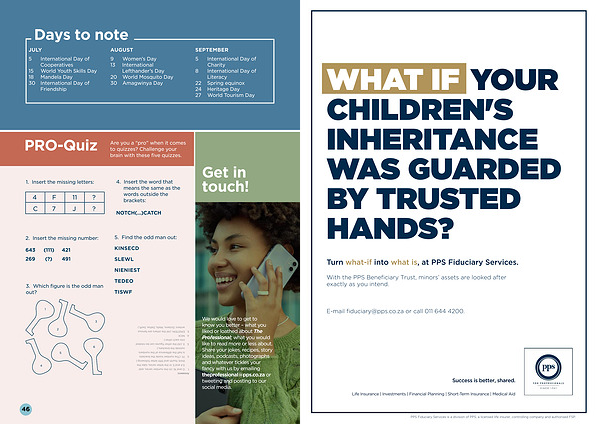 We would love to get to know you better – what you liked or loathed about The Professional; what you would like to read more or less about. Share your jokes, recipes, story ideas, podcasts, photographs and whatever tickles your fancy with us by emailing theprofessional @ pps. co. za or tweeting and posting to our social media.